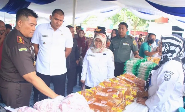 HUT Kejaksaan RI ke-80, Wawako Prabumulih bersama Staff Ahli TP PKK Hadiri Gerakan Pasar Murah