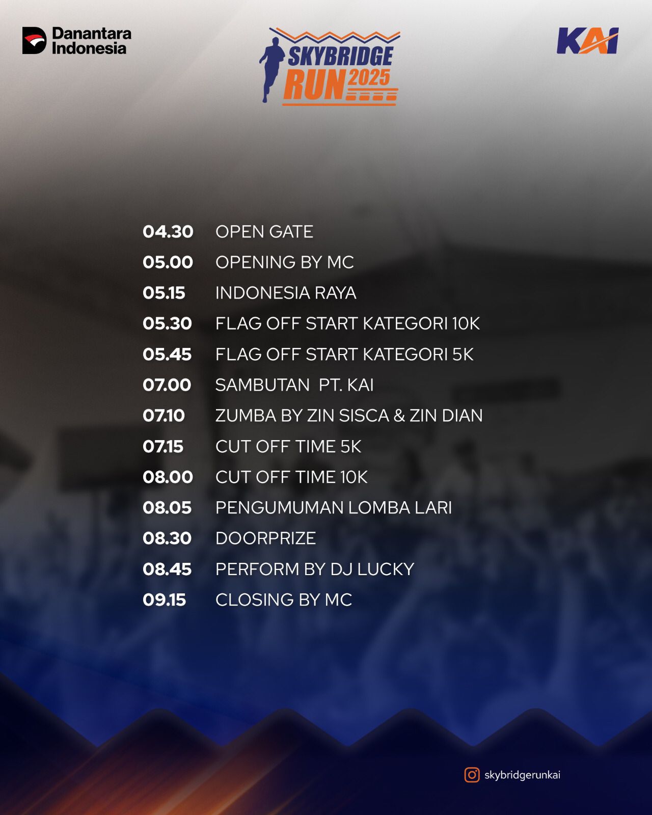 “Skybridge Race Run adalah ajang olahraga sekaligus wadah kebersamaan antara KAI dan masyarakat. Kami berharap kegiatan ini dapat memberikan pengalaman berbeda serta semakin meningkatkan kecintaan masyarakat terhadap transportasi kereta api,” ujar Krisbiyantoro, Sabtu (20/9/2025), dalam siaran pers.