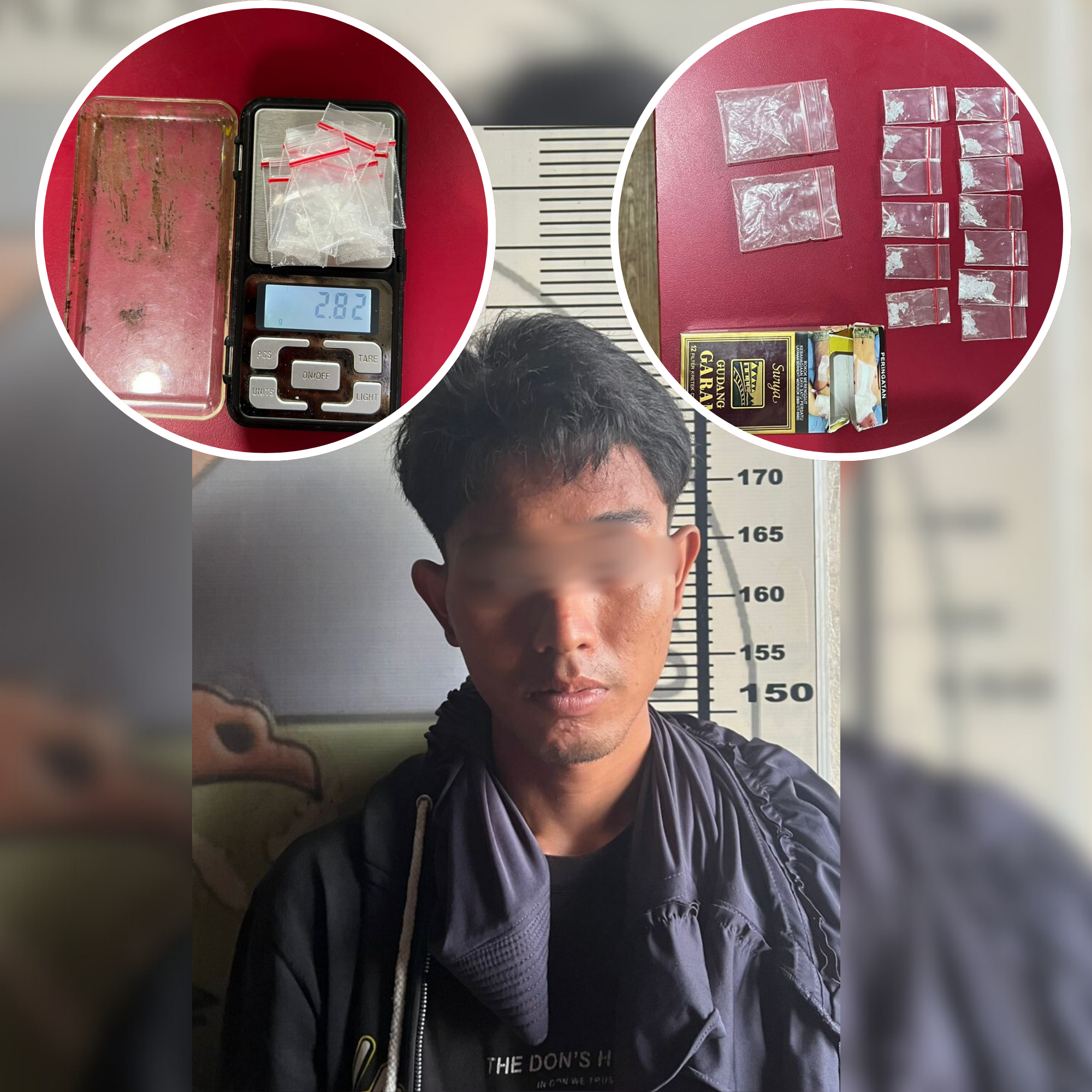 Dari tangan pelaku, polisi menyita barang bukti berupa 13 paket narkotika jenis sabu dengan berat 2,82 gram, 1 buah kotak rokok warna coklat, dan 2 buah plastik klip bening.