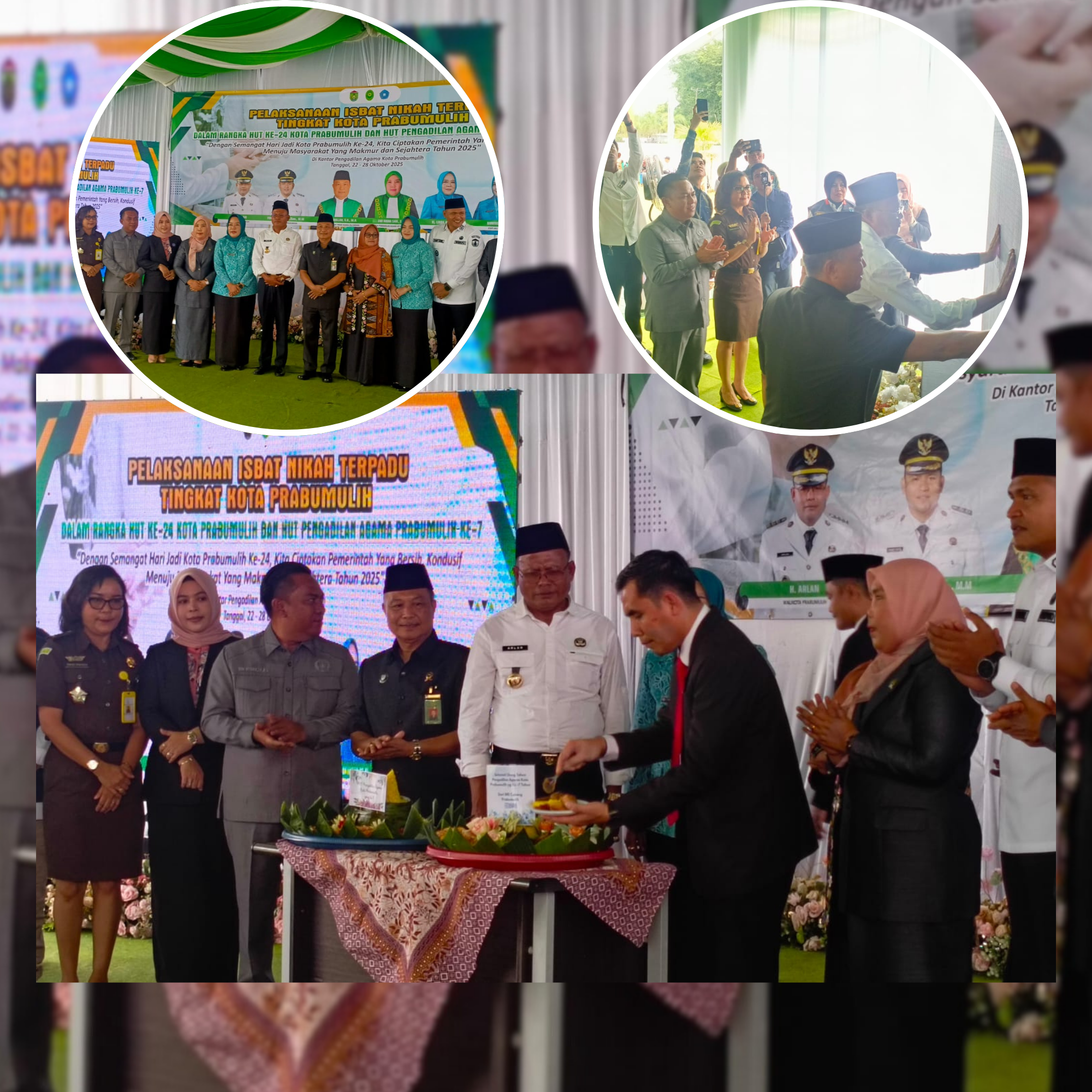 BERITAOPINI.ID PRABUMULIH SUMSEL | Walikota Prabumulih H. Arlan beserta Wakil Walikota Franky Nasril menghadiri acara pembukaan Isbat Nikah terpadu Kota Prabumulih tahun 2025. Kegiatan ini digelar dalam rangka memperingati Hari Jadi ke-24 Kota Prabumulih sekaligus HUT Pengadilan Agama ke-7 tahun 2025. Acara berlangsung mulai tanggal 22 hingga 28 Oktober 2025 di kantor Pengadilan Agama Kota Prabumulih dan diikuti oleh 245 pasangan yang belum memiliki akta nikah resmi, Rabu (23/10/2025).