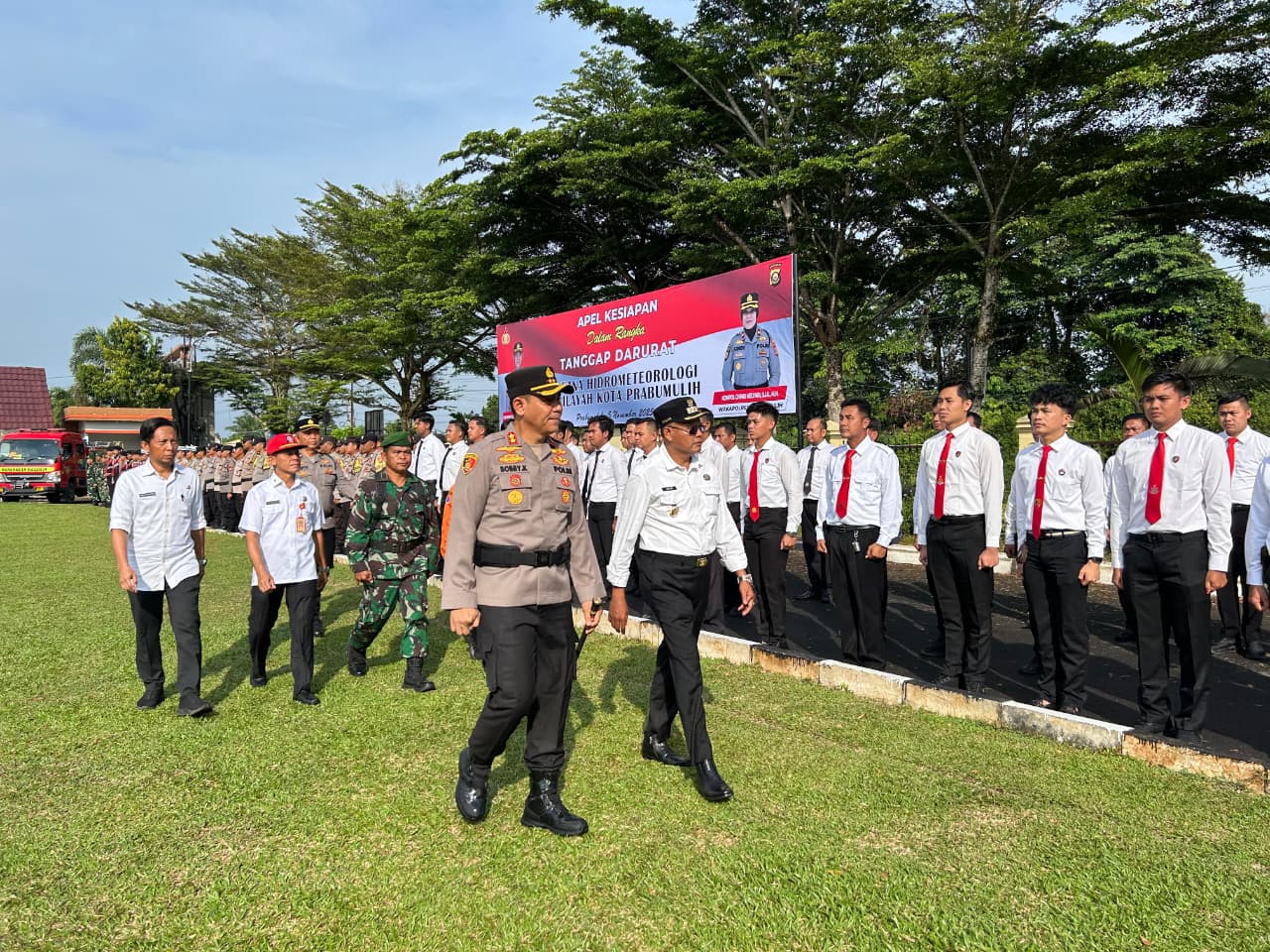 Apel dipimpin langsung oleh Kapolres Prabumulih AKBP Bobby Kusumawardhana, S.H., S.I.K., M.Si., dan dihadiri oleh Wali Kota Prabumulih H. Arlan, jajaran Forkopimda, serta berbagai instansi terkait seperti BPBD, Dinsos, Dinas Perkim, Satpol PP, PDAM, dan perwakilan Kodim 0404/ME.