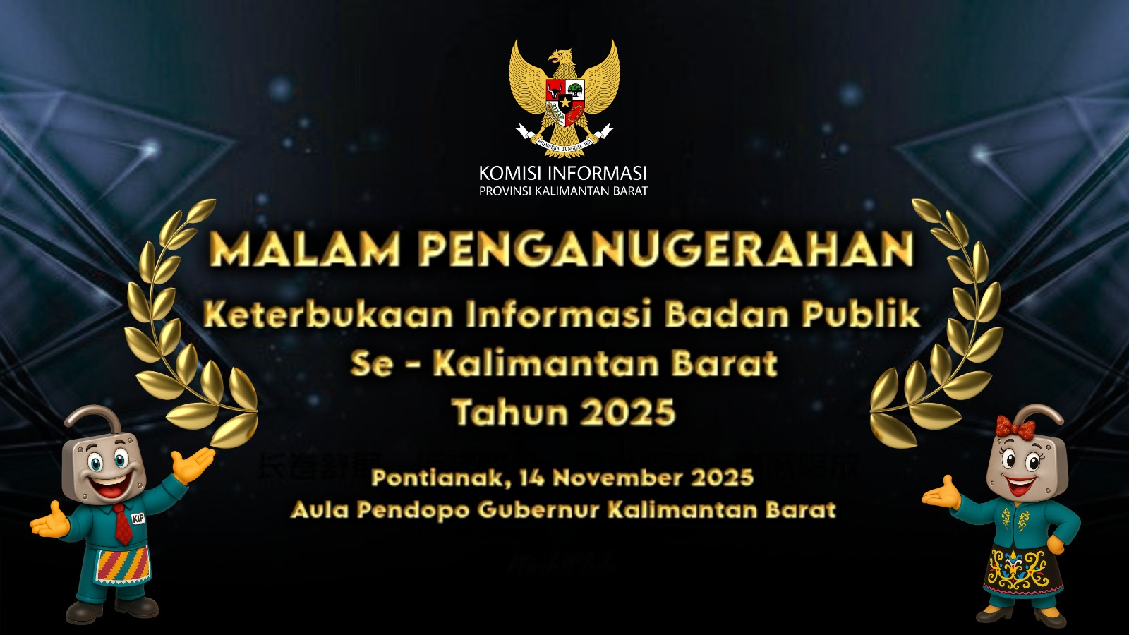 BERITAOPINI.ID PONTIANAK KALBAR | Komisi Informasi (KI) Provinsi Kalimantan Barat akan menggelar Malam Penganugerahan Keterbukaan Informasi Badan Publik Tahun 2025 pada Jumat, 14 November 2025, bertempat di Pendopo Gubernur Kalbar, Kota Pontianak.
