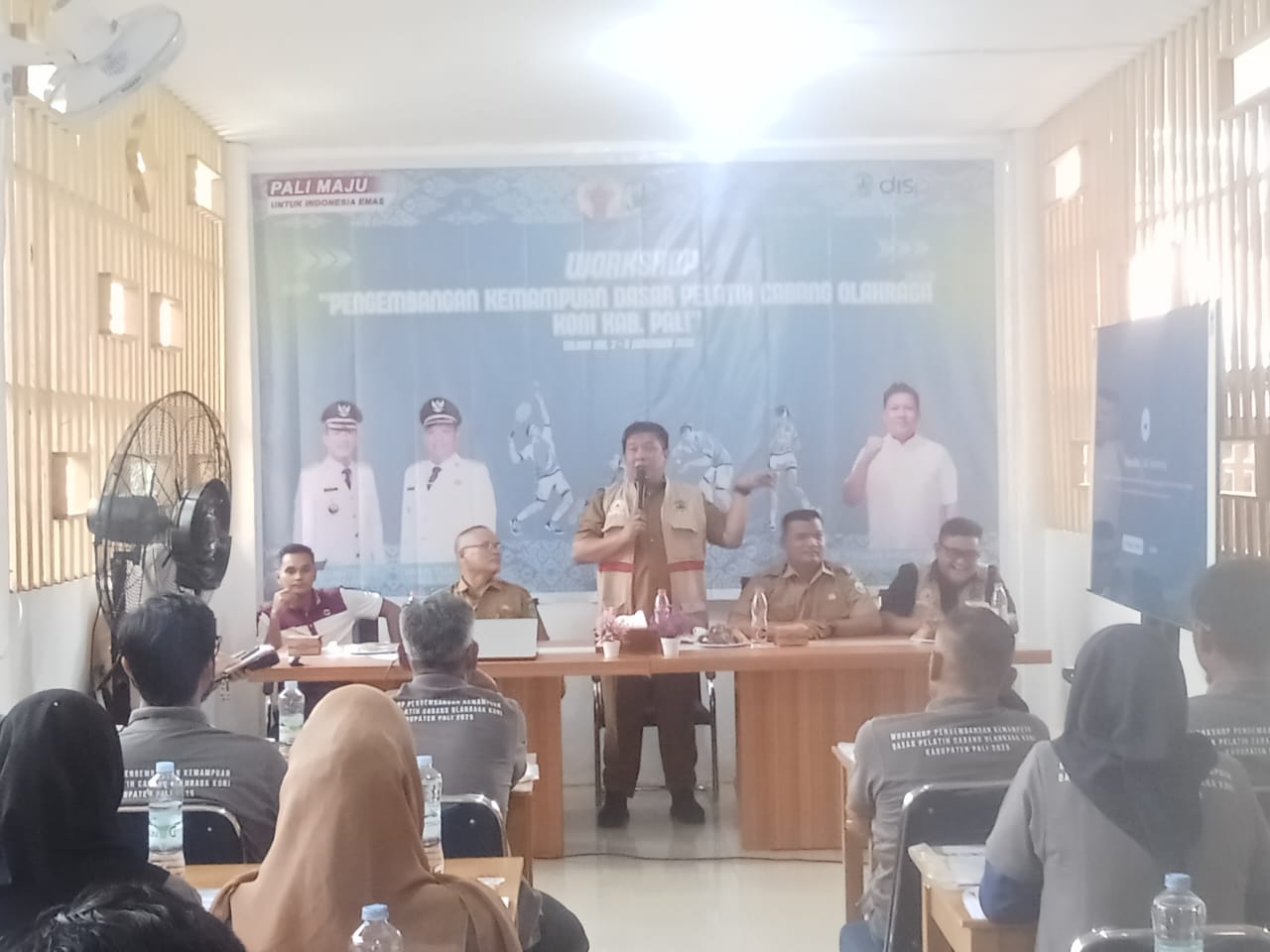 BERITAOPINI.ID PALI SUSMEL | Bertempat Di aula kantor Dispora, Komite Olahraga Nasional Indonesia (KONI) Kabupaten Penukal Abab Lematang Ilir (PALI) menggelar Workshop Dengan tema “Pengembangan Kemampuan Dasar Pelatih Cabang Olahraga”, Selasa 2 Desember 2025.