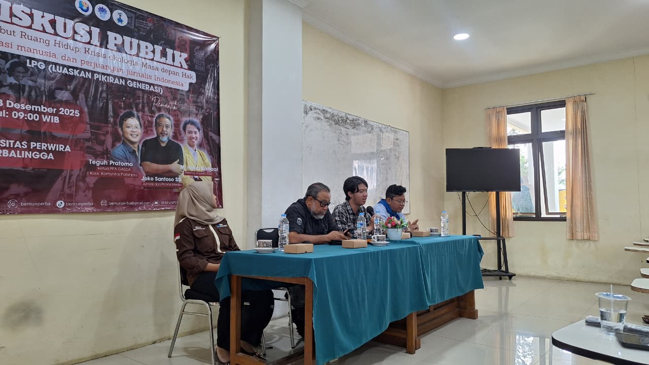 BERITAOPINI.ID PURBALINGGA JATENG Badan Eksekutif Mahasiswa Universitas Perwira Purbalingga (BEM Unperba) menggelar diskusi publik bertajuk “Merebut Ruang Hidup: Krisis Ekologis, Masa Depan HAM, dan Perjuangan Jurnalis Indonesia”. Kegiatan ini menghadirkan sejumlah narasumber dari latar belakang akademisi, aktivis lingkungan, hingga praktisi media, dan bertujuan membangun kesadaran bersama terkait ancaman krisis ekologis serta dampaknya terhadap hak asasi manusia (18/12/2025).