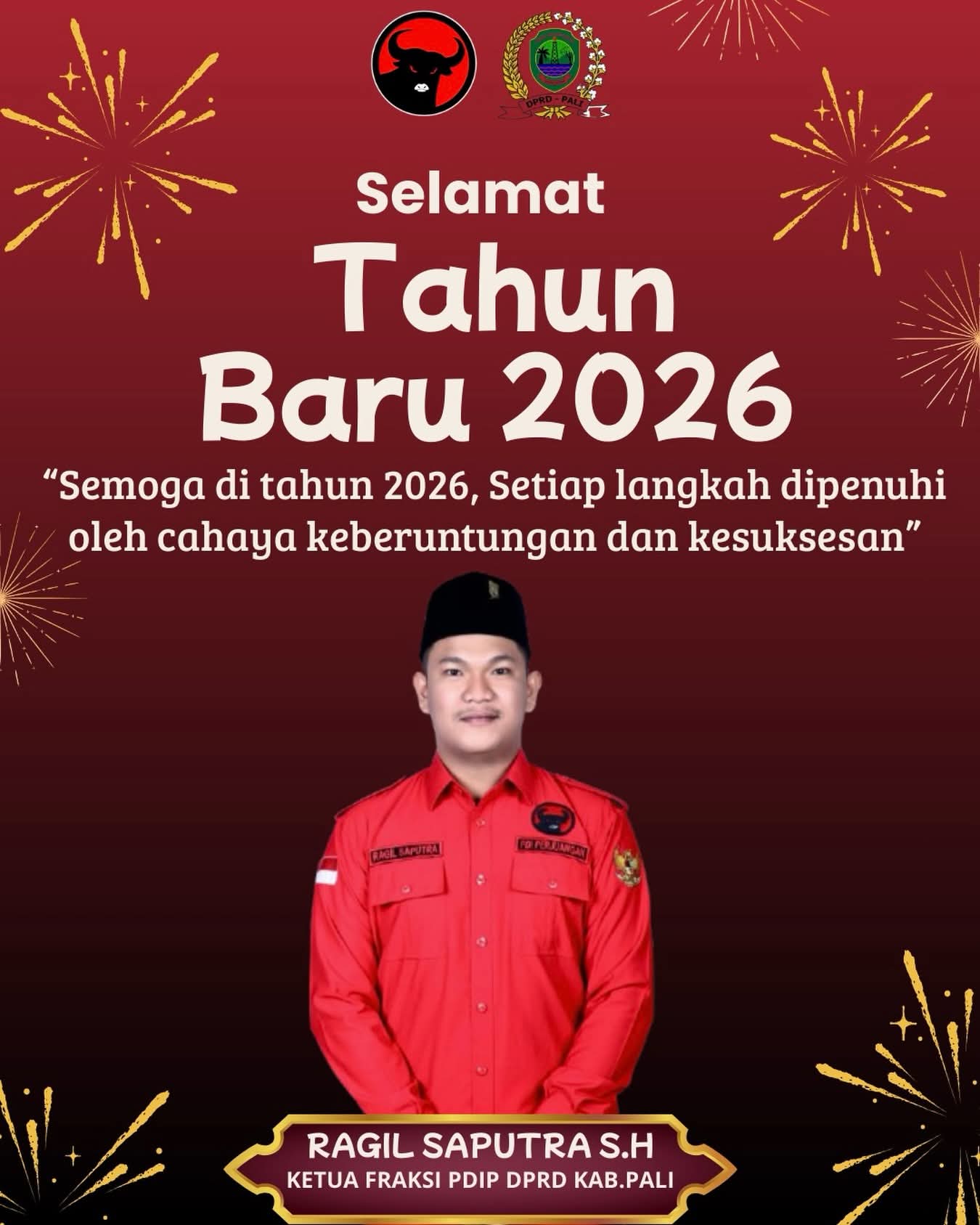 “Saya atas nama Fraksi PDIP Pali mengucapkan selamat tahun Baru 2026, Semoga ditahun depan dipenuhi cahaya dan keberuntungan” ujar Politisi muda Partai PDIP Pali tersebut.