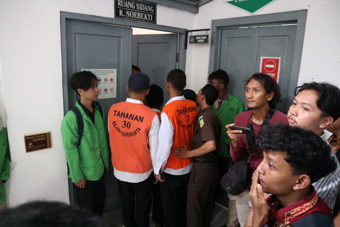 BERITAOPINI.ID SURAKARTA JATENG | Paska mencuat demonstrasi pada Agustus (29/08) lalu, beberapa aktivis pro demokrasi resmi diadili di Pengadilan Negeri Surakarta pada Selasa (06/01/2026).Sidang perkara nomor 343-344/Pid.B/PN.Skt. dipimpin oleh hakim ketua antara lain Dian Erdianto, dan hakim anggota Bayu Soho Rahardjo dan Fatarony.