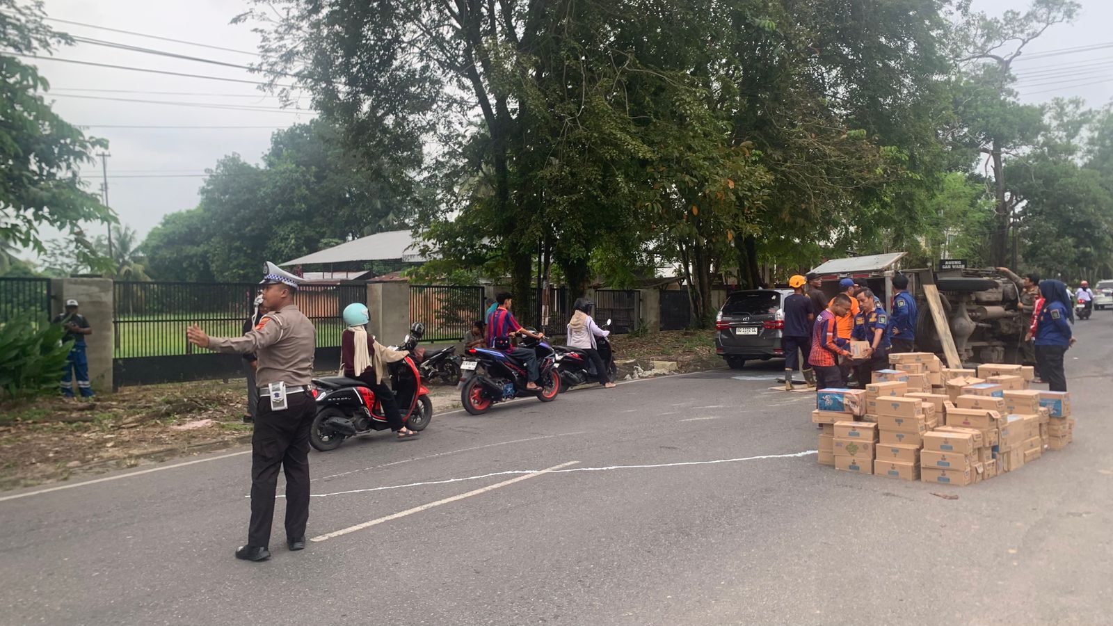 Polres Prabumulih Respon Lakalantas Tunggal Mobil Box Bawa Susu UHT, Kasat Lantas : Faktor Teknis Kendaraan