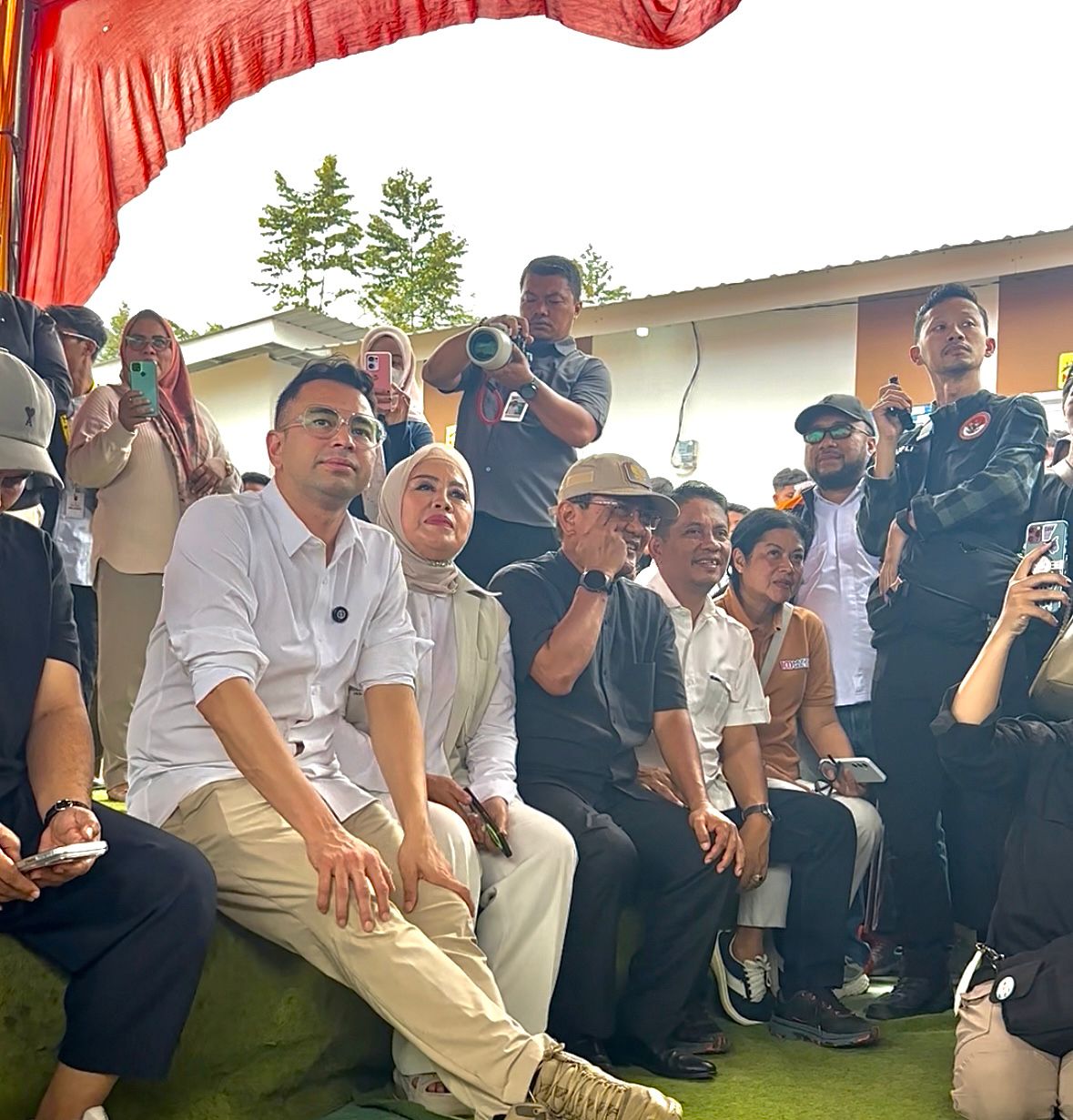 Kedatangan Raffi Ahmad, dr. Tompi disambut  masyarakat ramai menunggu di lokasi yang terdiri bukan hanya warga Huntara namun juga warga sekitar. Masyarakat antusias menunggu Raffi Ahmad yang memang terkenal digandrungi kaum wanita.