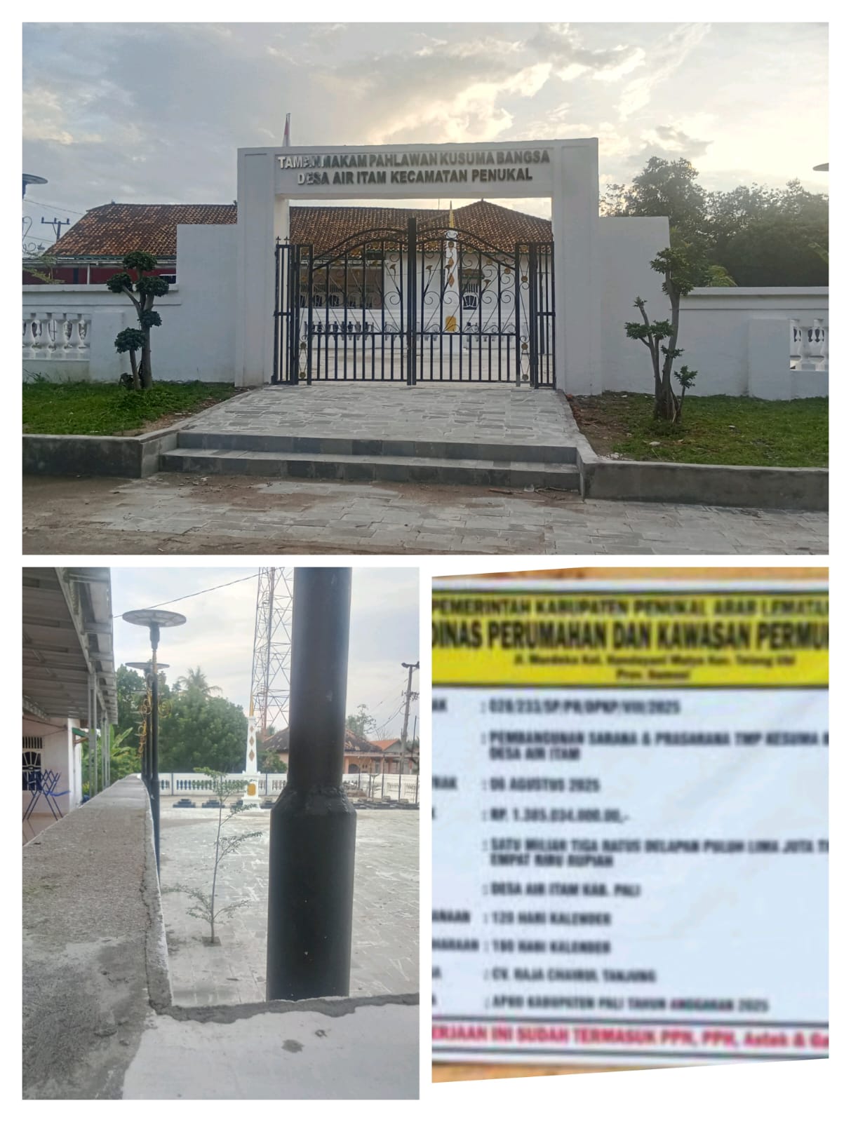BERITAOPINI.ID PALI SUMSEL | Proyek pembangunan Sarana dan Prasarana Taman Makam Pahlawan (TMP) Kusuma Bangsa yang berlokasi di Desa Air Itam, Kabupaten Penukal Abab Lematang Ilir (PALI), kini menjadi sorotan publik. Proyek yang berada di bawah naungan Dinas Perumahan dan Kawasan Permukiman (Perkim) Kabupaten PALI tersebut diduga tidak sesuai dengan volume pekerjaan serta disinyalir adanya mark up anggaran.