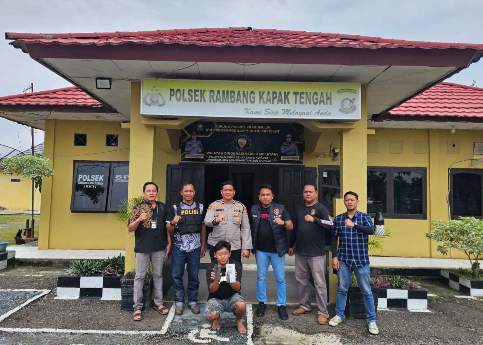 Penangkapan terhadap tersangka dilakukan pada Jumat, 13 Februari 2026 sekitar pukul 09.50 WIB. Tim Opsnal “Sunyi Senyap The Reborn” Polsek Rambang Kapak Tengah mendapatkan informasi bahwa pelaku sedang berada di kantor PDAM Desa Jungai. Menindaklanjuti informasi tersebut, Kapolsek Rambang Kapak Tengah IPDA Wendy Kurniawan, S.Psi., M.H. segera memerintahkan Kanit Reskrim AIPDA M. Agustino, S.H. bersama tim opsnal untuk melakukan penangkapan.