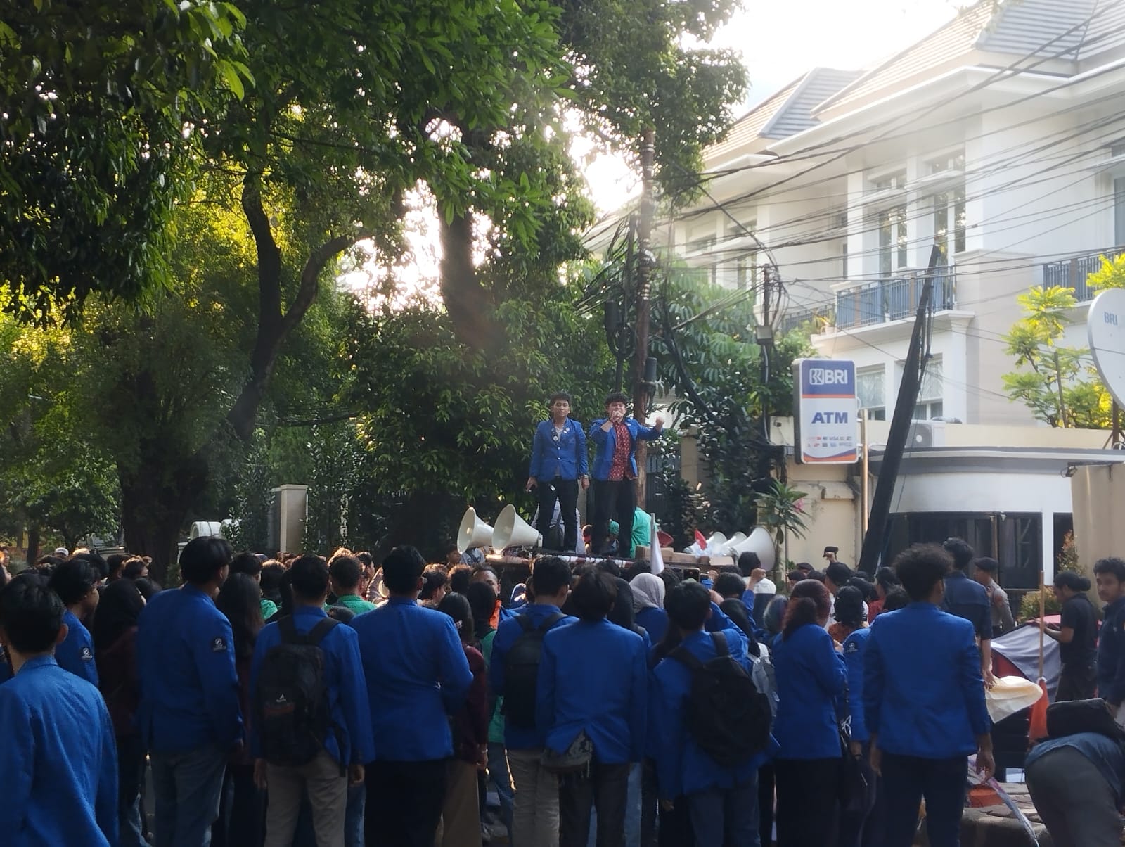 Rhidam memperkenalkan dirinya sebagai Presiden Mahasiswa Untirta, sementara Oriza menegaskan posisinya sebagai Wakil Presiden Mahasiswa Untirta yang turut hadir dalam aksi tersebut.