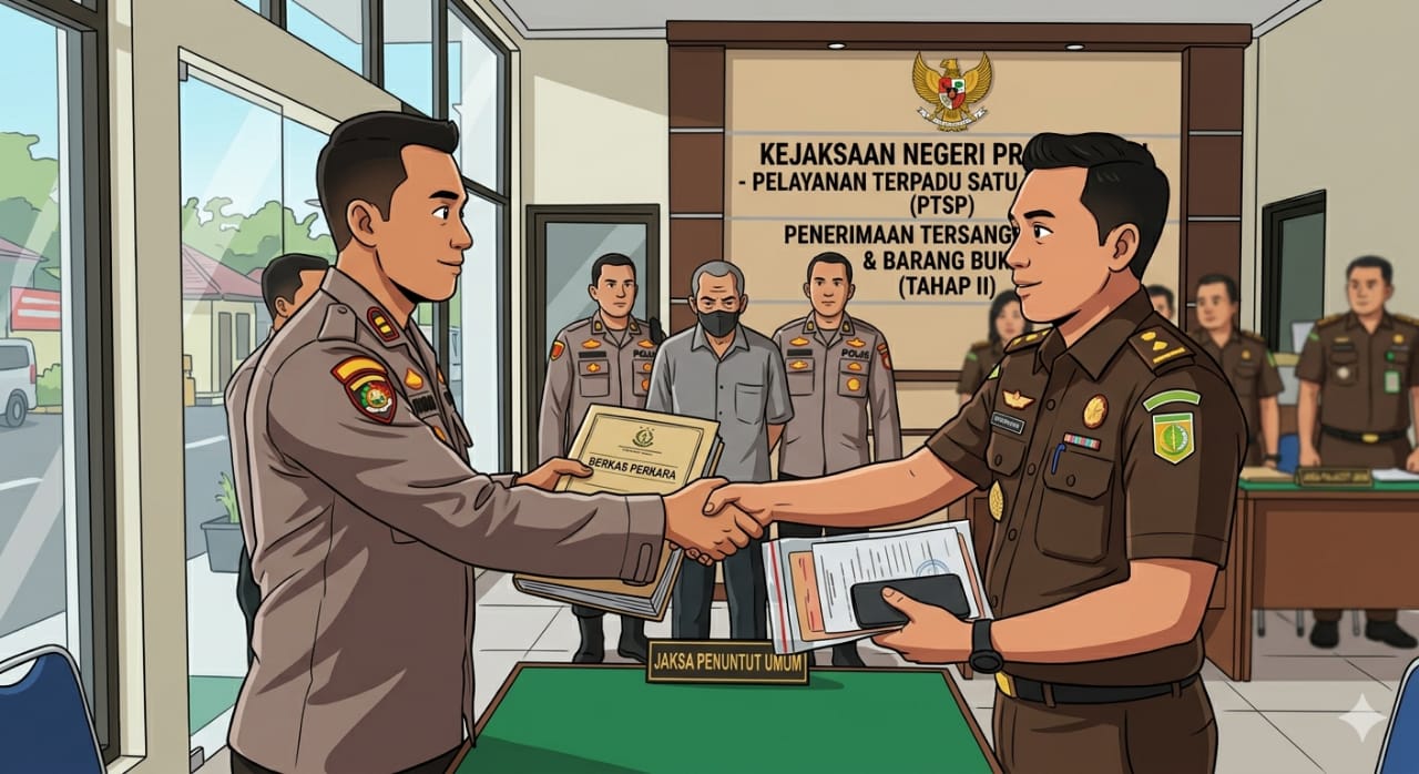 Proses pelimpahan tahap II yang meliputi penyerahan tersangka beserta barang bukti dilakukan setelah jaksa peneliti menyatakan bahwa seluruh unsur formil dan materiil dalam berkas perkara telah terpenuhi. Dengan demikian, tanggung jawab penanganan perkara kini beralih dari penyidik Polres Prabumulih ke Penuntut Umum.