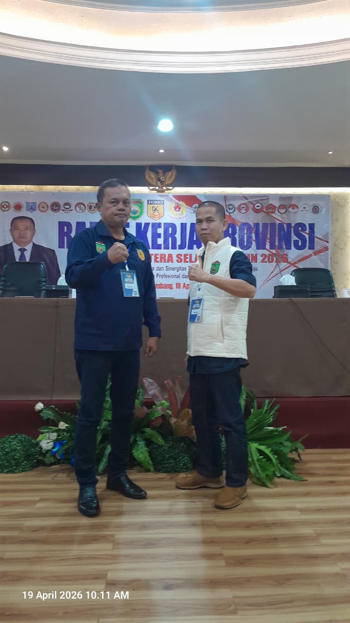 BERITAOPINI.ID PRABUMULIH SUMSEL | Pengurus Federasi Olahraga Karate-Do Indonesia (FORKI) Kota Prabumulih, Abi Samran, SH., MH dan Haryoni Amin, SH menghadiri Rapat Kerja Provinsi (Rakerprov) FORKI Sumatera Selatan Tahun 2026 yang digelar di Hotel Swarna Dwipa, Minggu (19/4/2026).
